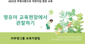 부영그룹이 전국 부영아파트 단지 내 관리동에 운영·지원 중인 ‘부영 사랑으로 어린이집’ 원장들을 대상으로 관찰 및 원내 학습공동체 운영 역량 강화를 위한 교육 프로그램을 진행한다고 26일 밝혔다.이번 교육은 원장이 먼저 교육을 받은 후 교사들에게 전달 연수를 실시하고 현장 적용을 강화한 것이 특징이다. 그뿐 아니라 부영 사랑으로 어린이집 원장들이 향후 ‘관찰 교육 강사’로 성장하도록 지원하는 데 목적이 있다. 교육은 총 5개월에 걸쳐 진행되며, 동영상 강의와 온라인 실시간 연수 방식을 병행한다.부영그룹 관계자는 “이번 교육 프로그램