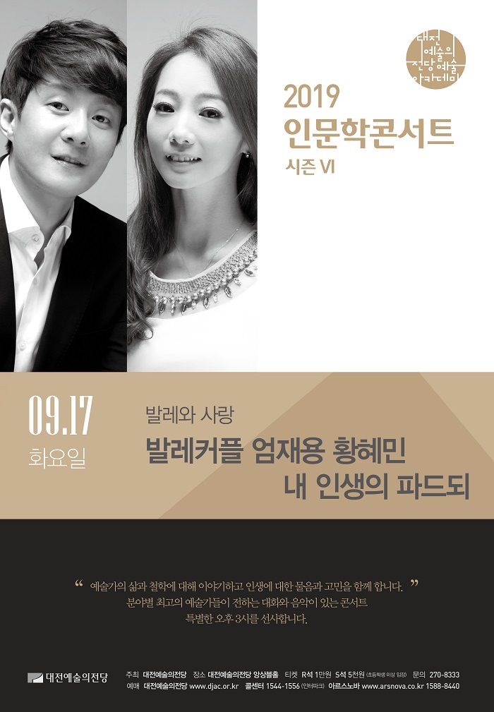 2019년 9월 17일부터 2019년 9월 17일까지 대전예술의전당 (앙상블홀)에서 콘서트 <인문학콘서트 Ⅵ, 발레와 사랑> 공연이 열린다.